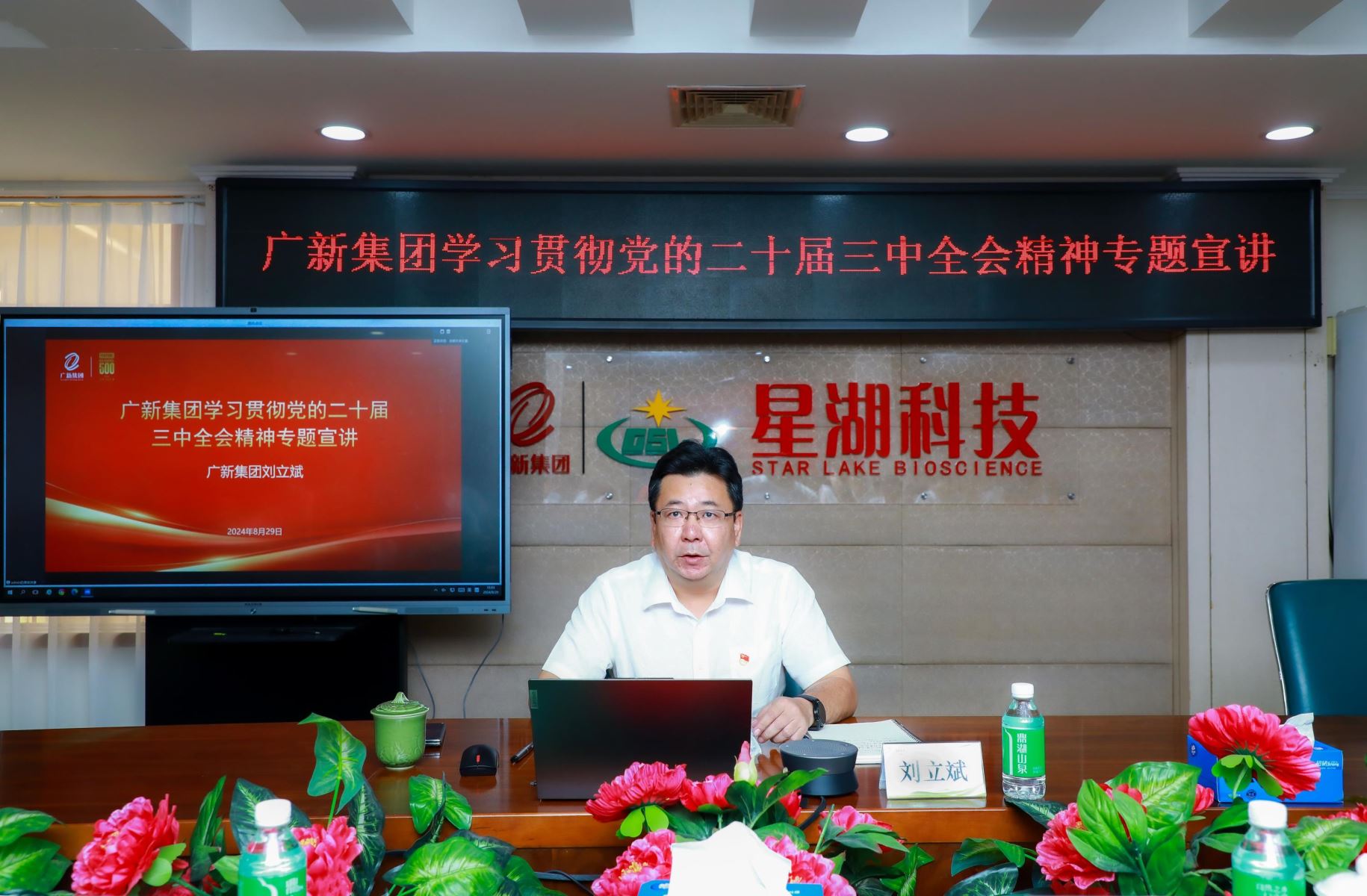 為深入學(xué)習(xí)貫徹習(xí)近平總書記在黨的二十屆三中全會(huì)上的重要講話精神和全會(huì)精神,推動(dòng)全會(huì)精神貫徹落實(shí),8月29日下午,廣新集團(tuán)黨委委員、副總經(jīng)理劉立斌到星湖科技專題宣講黨的二十屆三中全會(huì)精神。星湖科技領(lǐng)導(dǎo)班子、專項(xiàng)工作負(fù)責(zé)人、中層副職及以上管理人員,下屬企業(yè)領(lǐng)導(dǎo)班子及中層管理人員共140多人參加會(huì)議,星湖科技黨委書記陳武主持會(huì)議。