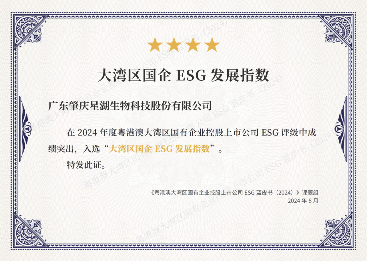 8月27日,由中國企業(yè)改革與發(fā)展研究會(huì)、責(zé)任云研究院主辦,廣東省國資委聯(lián)合主辦,地方國資委支持的“第四屆國企社會(huì)價(jià)值論壇暨ESG中國·粵港澳大灣區(qū)企業(yè)社會(huì)責(zé)任發(fā)布會(huì)”在廣州召開。星湖科技繼去年入選“國有企業(yè)上市公司ESG·先鋒100指數(shù)(2023) ”后,今年再次憑借其在責(zé)任擔(dān)當(dāng)與社會(huì)價(jià)值創(chuàng)造方面的顯著成效,入選“大灣區(qū)國企ESG發(fā)展指數(shù)”。